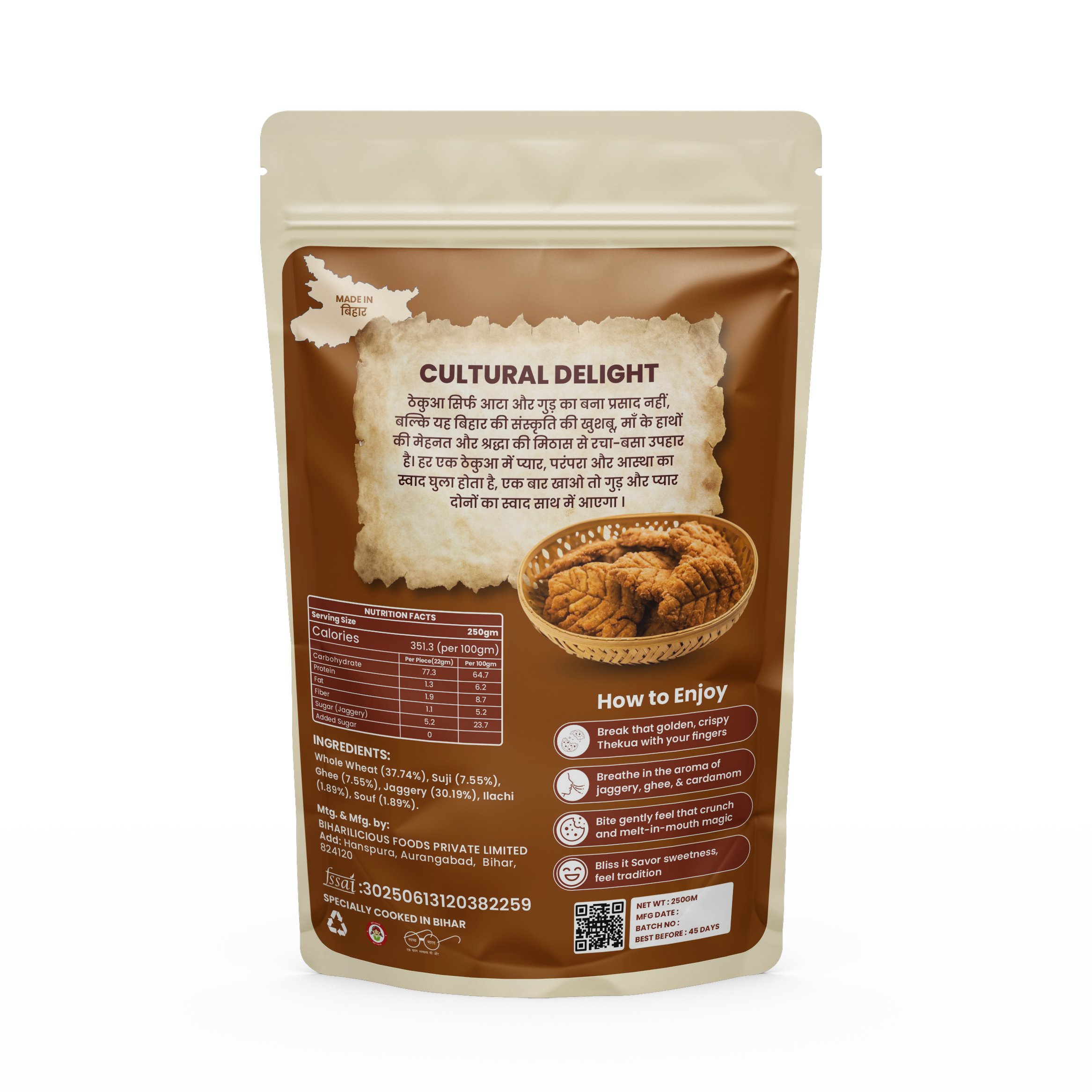 Made using jaggery instead of refined sugar, it reflects the authentic heritage of Bihar, where Thekua holds deep cultural importance during Chhath Puja and festive celebrations.